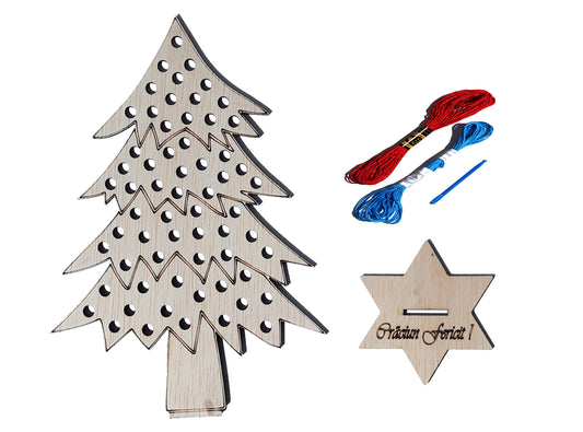 Brad de Crăciun 19x13 cm - set pentru cusut cu ațe și ac incluse