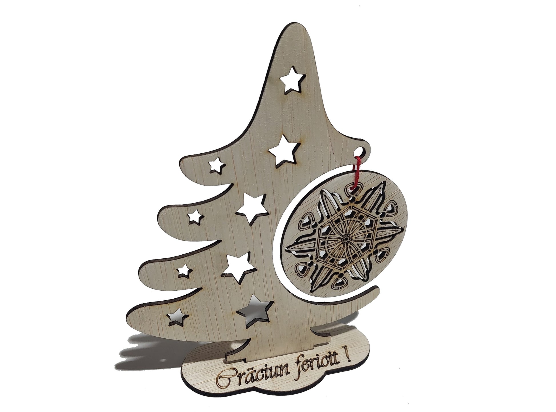 Etape :Lipiți fotografia pe partea negravată a globulețului. Recomandăm decuparea acesteia într-un un format rotund, cu diametrul de 7 cm, pentru a lăsa o margine de 5 mm. Colorați componentele după propria imaginație. Lipiți fotografia pe partea fără model a globului. Legați globulețul de brad, în zona care este decupată semirotund, având grijă ca ața să treacă astfel: 1- Brăduț: din față spre spate. 2- Glob : din spate spre față . 3- Faceți un nod, având grijă să nu fie prea strâns, pentru ca globulețul să se încadreze echisdistant în brăduț. Suportul se lipește ultimul, după lipirea celorlalte componente și colorarea acestora. Piesele pot fi colorate cu tempera, carioci, culori acrilice sau aquacolor. Modelul se poate colora înainte sau după lipire și se poate decora cu diferite accesorii, neincluse. Adezivul nu este inclus. Recomandăm aracet, pentru că uscarea relativ lentă a acestuia permite micile corecții de amplasare a componentelor. Nu puneți adeziv în exces, recomandăm doar adăugarea câtorva picături în zonele de contact, întinse cu o pensulă fină.
