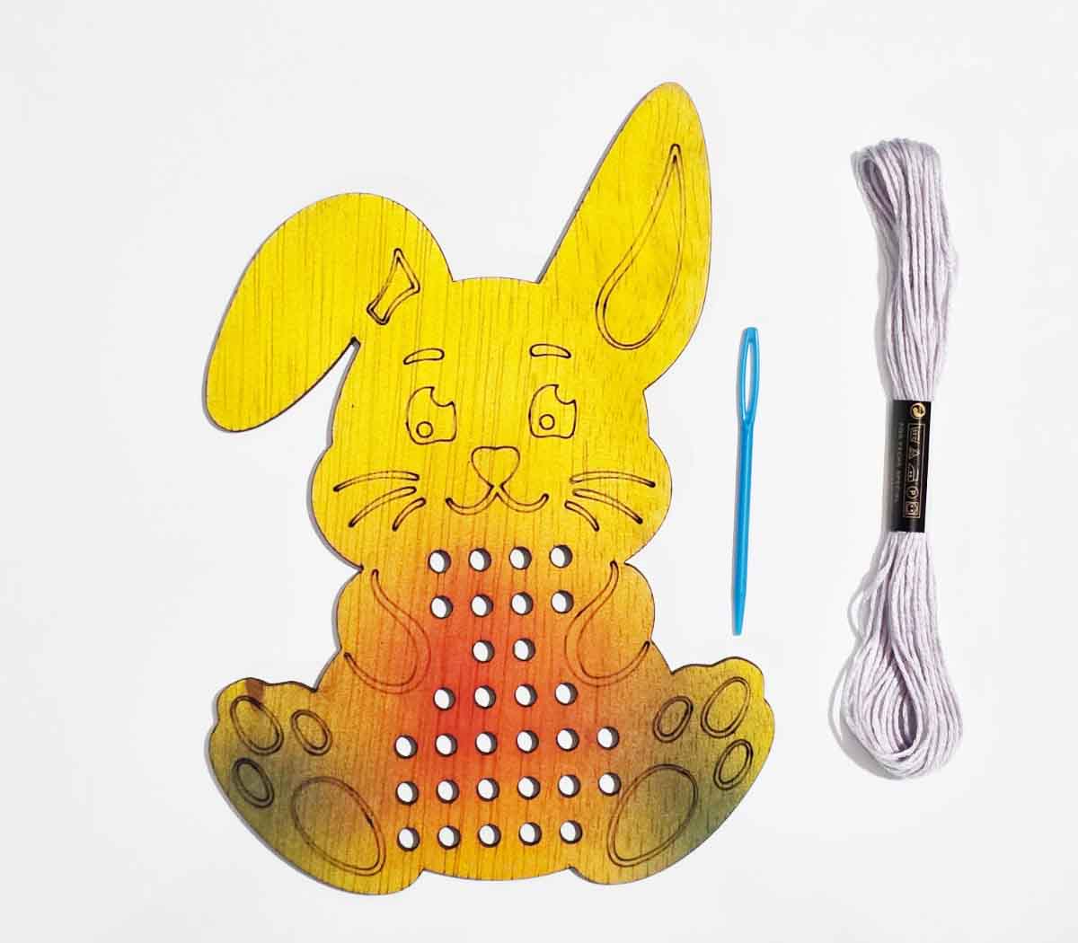 Set de cusut pentru copii, realizat din placaj, cu dimensiunea de 19x14 cm. Grosimea piesei este de 4 mm. Setul conține o bobină de ață și un ac din plastic, cu capul rotund. Modelul este colorat aleatoriu în culori acrilice, 100% ecologice și non-toxice. Culoarea ațelor și a acului de cusut sunt aleatorii. Modelele pot fi decorate cu diferite accesorii, neincluse.
