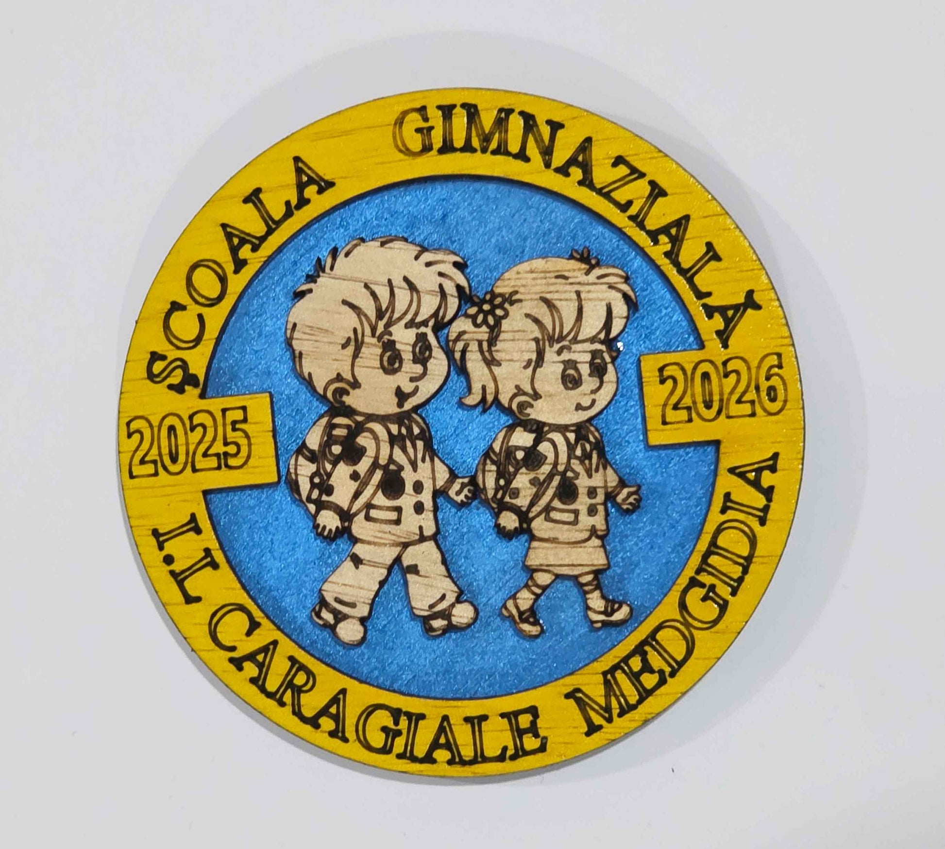 Magnet personalizabil cu diametrul de 10 cm, realizat din straturi suprapuse din placaj. Grosimea este de 12 mm. Se personalizează pe cercul marginal, conform imaginii din prezentare. Produsul este colorat cu vopseluri acrilice, 100% non-toxice și non-alergice.